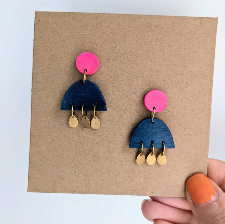 Super lightweight and comfortable to wear, these are created using a laser cutter on 3mm eco-friendly birch plywood. They are then individually sanded and carefully painted using low toxic acrylic paint, finished with low toxic varnish.