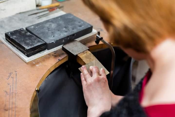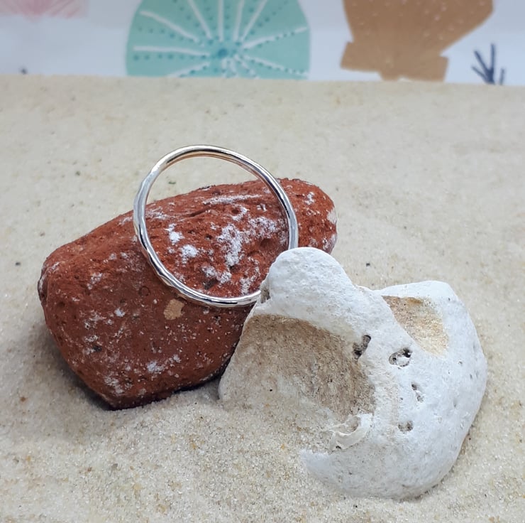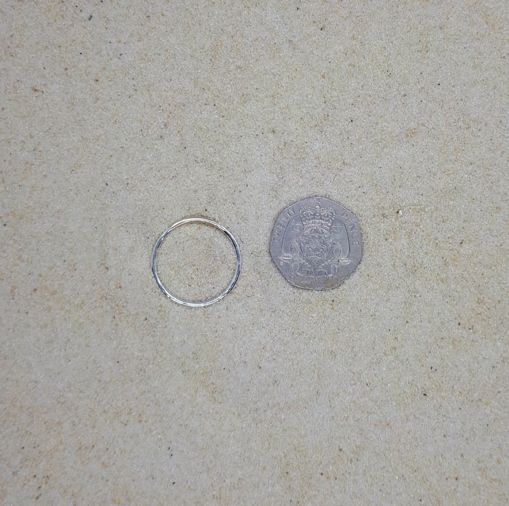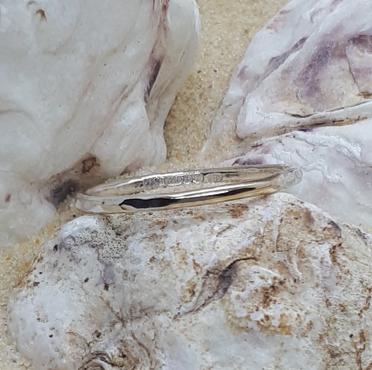 A hammered sterling silver 1.5mm ring band, with a smooth section of 9ct yellow gold.