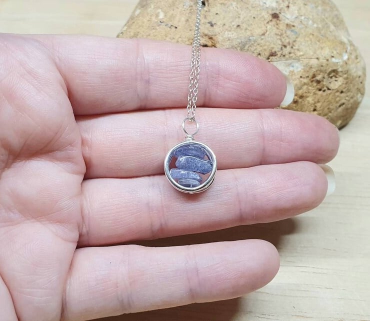 This is a small sterling silver genuine Tanzanite circle pendant.