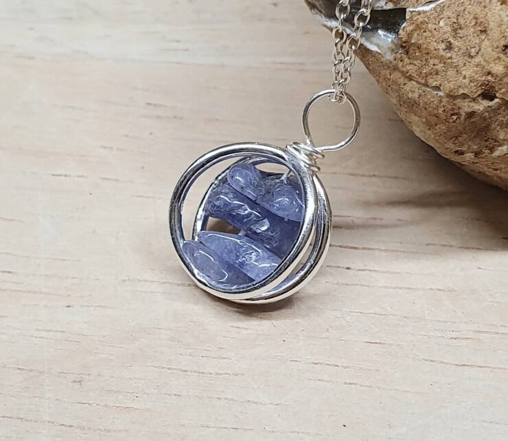 Small circle Tanzanite pendant. 925 sterling silver. December Birthstone