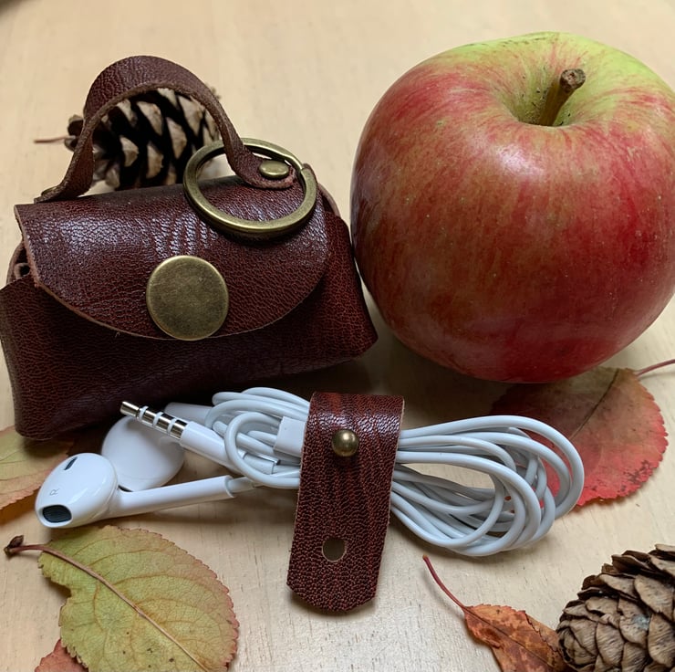 Along with the keyring is a leather cable tidy to keep in-ear wired headphones neat before storing them in the bag keyring. Never lose them again!