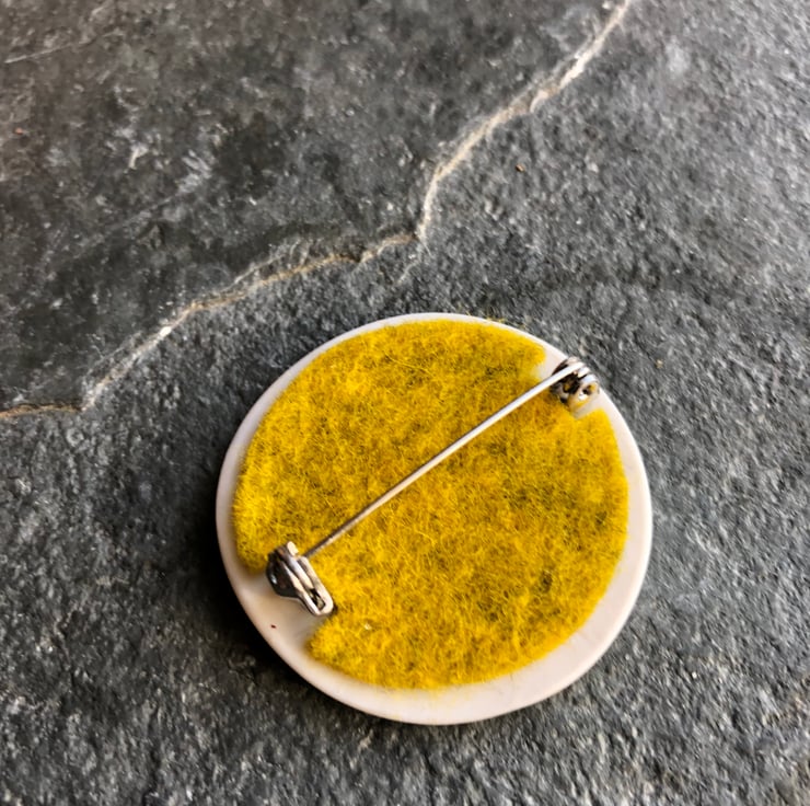 My brooches come in a variety of textured patterns and colours mounted on steel brooch back with a safety catch.