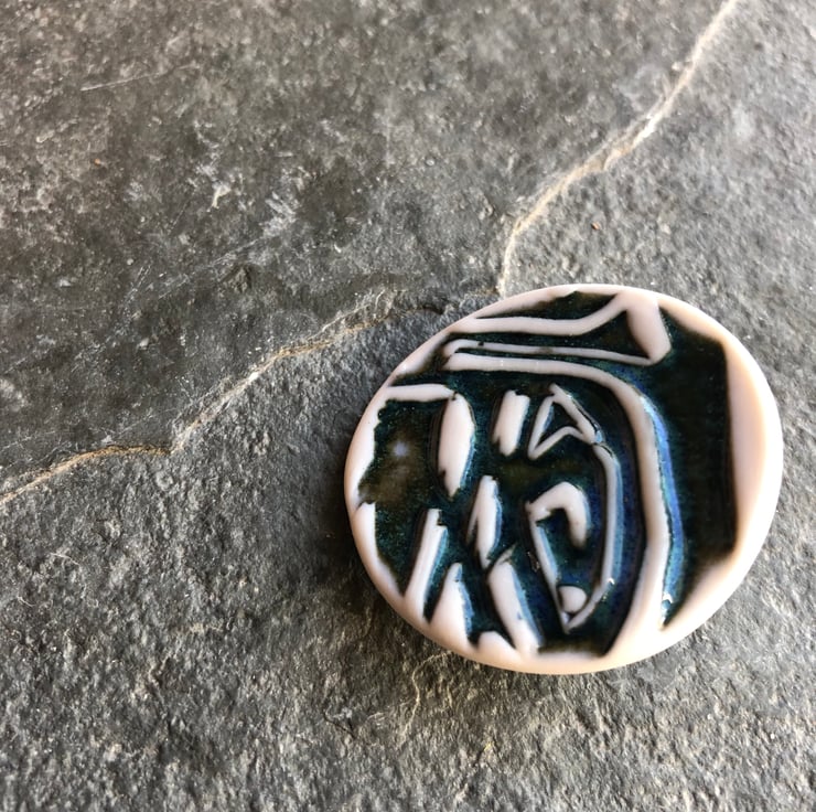 Handmade porcelain brooches are from a new range of accessories at The Porcelain Menagerie, featuring the patterns from my creatures. This brooch has my abstract graphic design inspired by mid century ceramics.