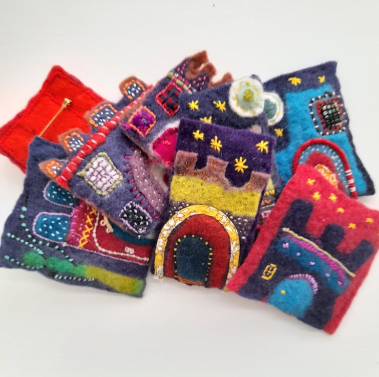 I love colour and texture and I love buildings I thought it would be fun to see if I could felt little buildings and I think I have found a theme I will love making and I will expand on over the months ahead.