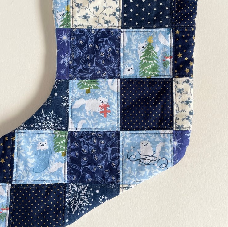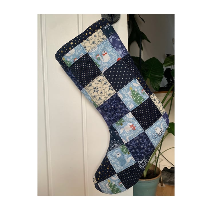 Cute Christmas stocking for cat lovers . Quilted and lined inside.