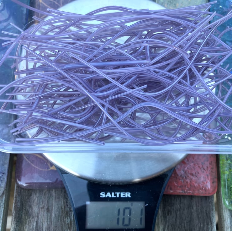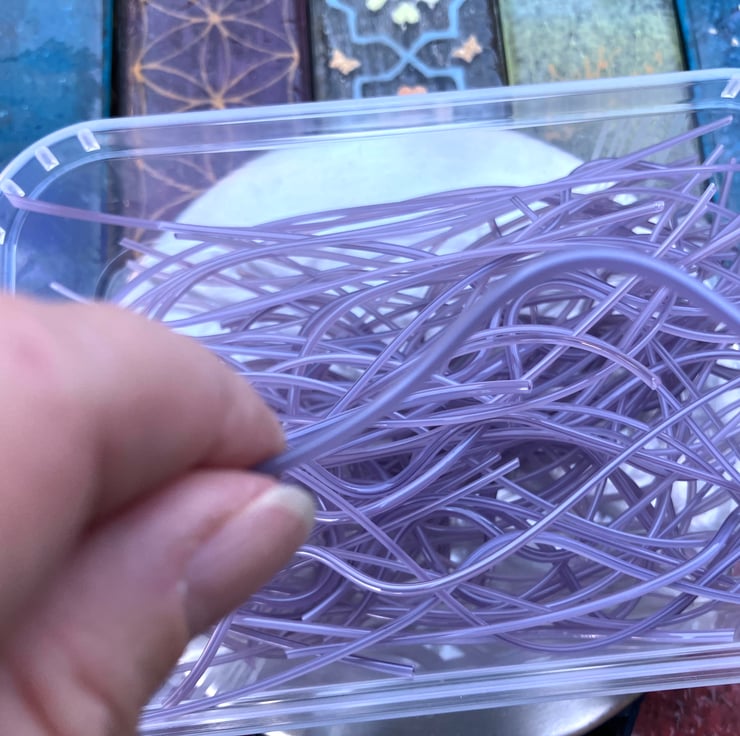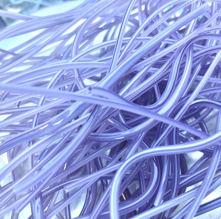 Streaky purple Bullseye 90coe glass Vitrigraph stringers. Made with a range of Bullseye glass colours giving an overall ‘heather’ kind of shade.