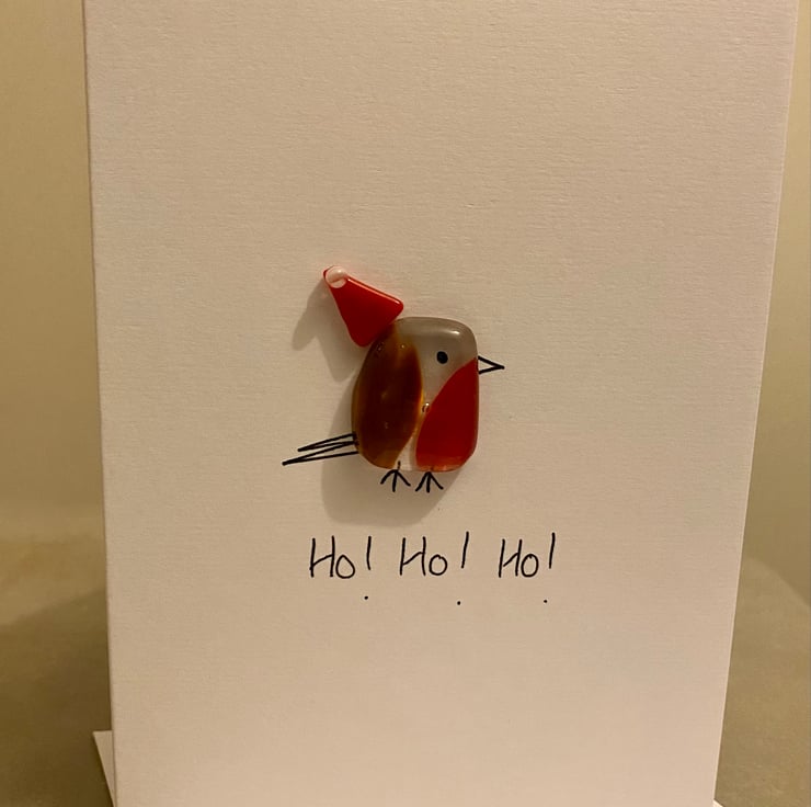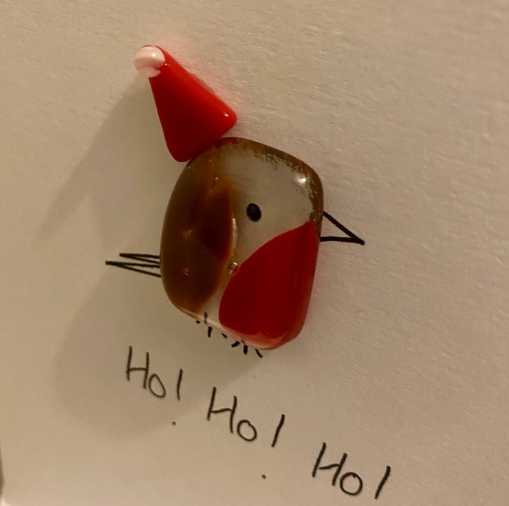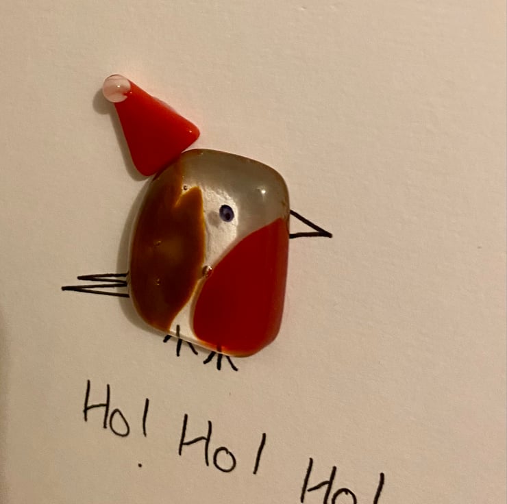 Send Christmas wishes with this cute fused robin in a Santa hat.