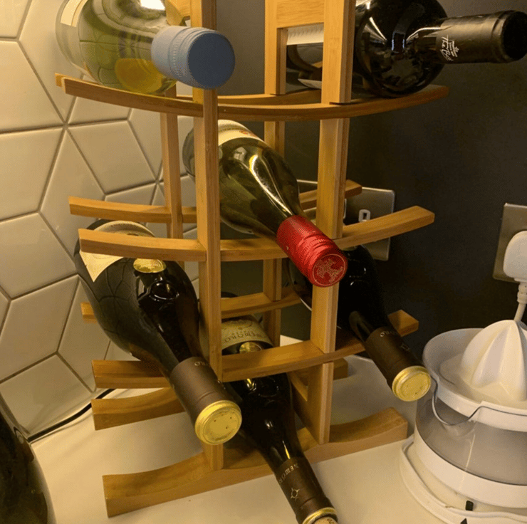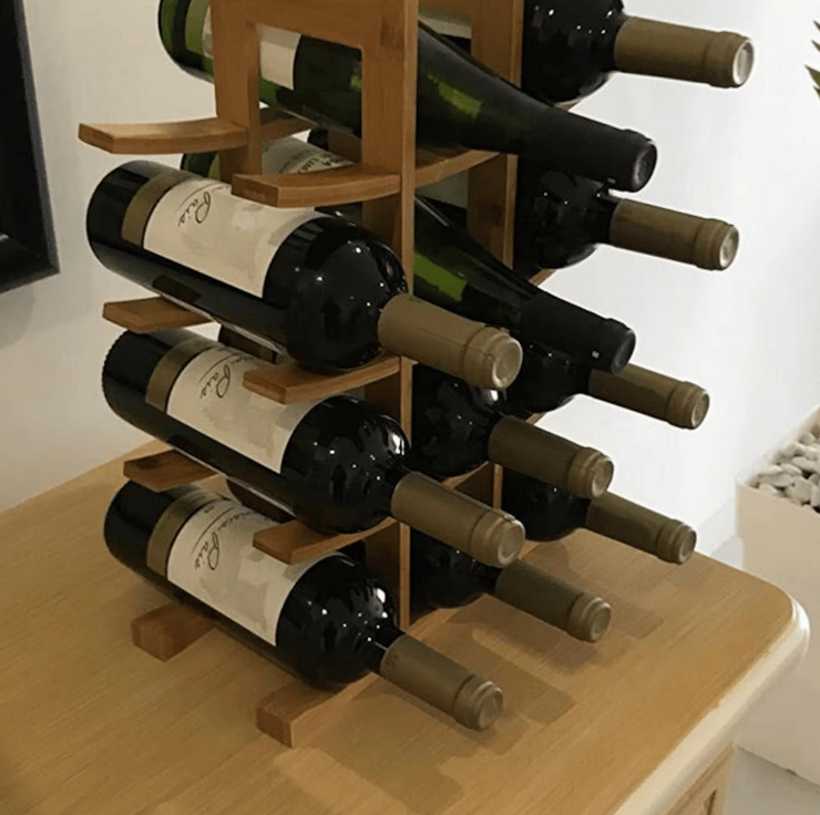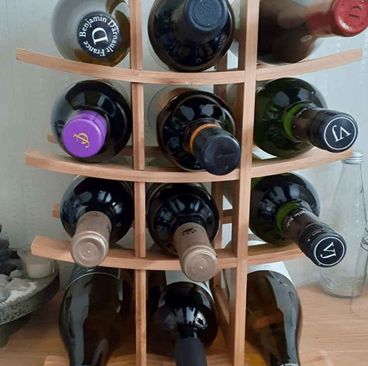 Create a stylish storage space for your wine collection with this 12 bottle wine rack crafted from bamboo wood with an attractive natural finish. The curved panels of the wine rack are easy slip in and designed to maximize storage shelves space and prevent the rolling of wine bottles.