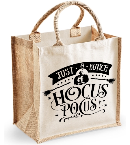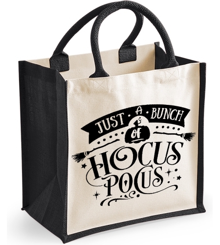Just A Bunch Of Hocus Pocus Midi Jute Canvas Bag - Halloween witch Themed