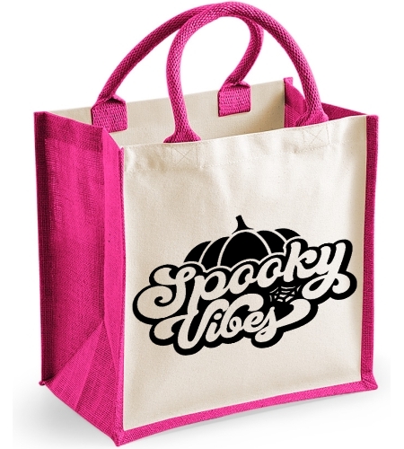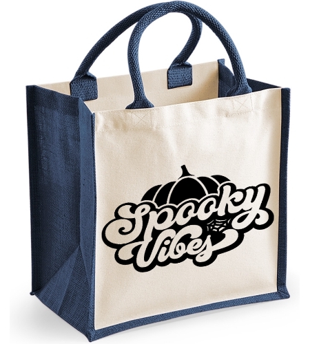 Spooky Vibes Midi Jute Canvas Bag - Halloween pumpkin Themed