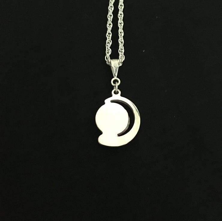 The pendant measures 0.75 in x 0.75 in and is finished with an 18 in chain.