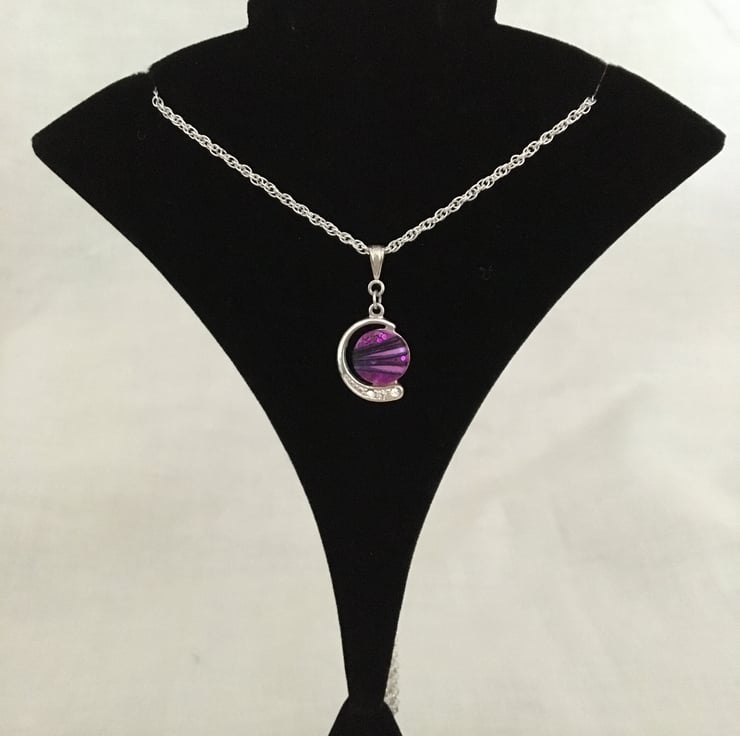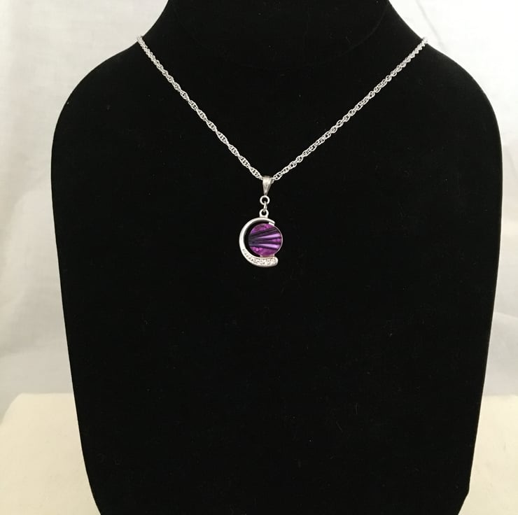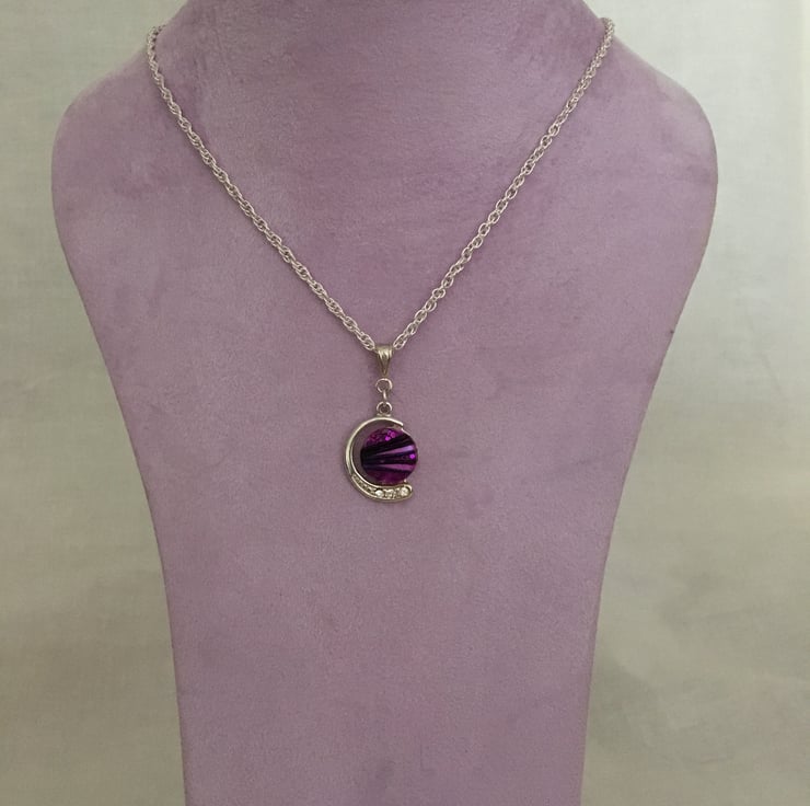 A mulberry wine centred pendant in a high quality silver plated setting.