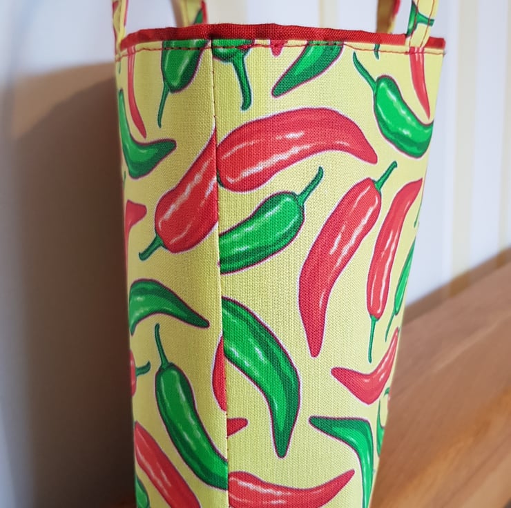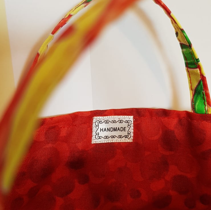 This little reusable gift bag is ideal for popping in a small gift, or two. It measures approx 7" x 7": 18cm x 18cm and 2" , 5cm at the base. I have chosen a good quality cotton fabric , the bag is lined with a coordinating cotton fabric and is interfaced with a recycled interfacing so it keeps it shape. Ideal to pop in a foodie gift and be used for keeping something in in the future