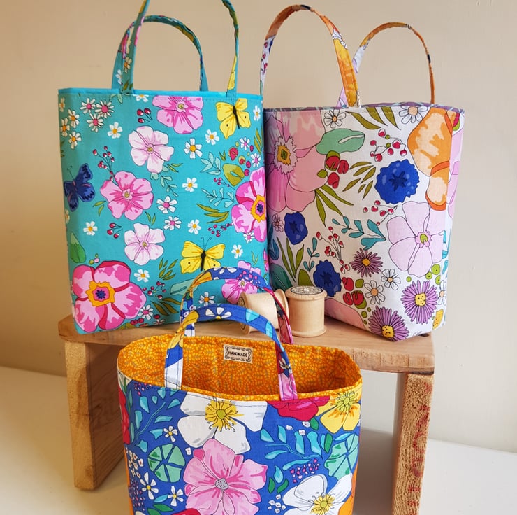 This little reusable gift bag is ideal for popping in a small gift, or two. It measures approx 7" x 7": 18cm x 18cm and 2" , 5cm at the base. I have chosen a good quality cotton fabric , the bag is lined with a coordinating cotton fabric and is interfaced with a recycled interfacing so it keeps it shape. Ideal for a gift and be used for keeping something in in the future
