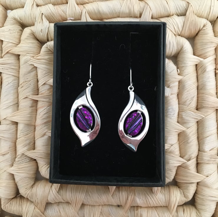 Mulberry wine earrings in high quality silver plated settings.