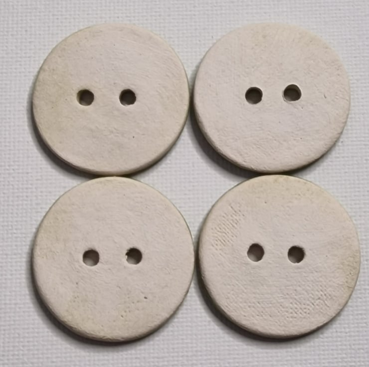 These buttons have been formed from clay and fired in the kiln, then glazed and fired a second time.