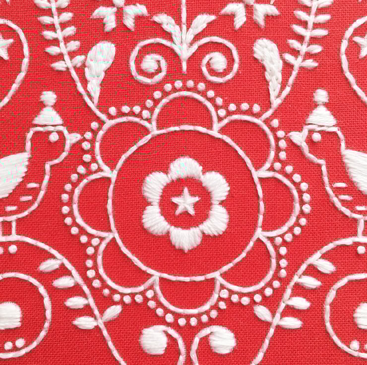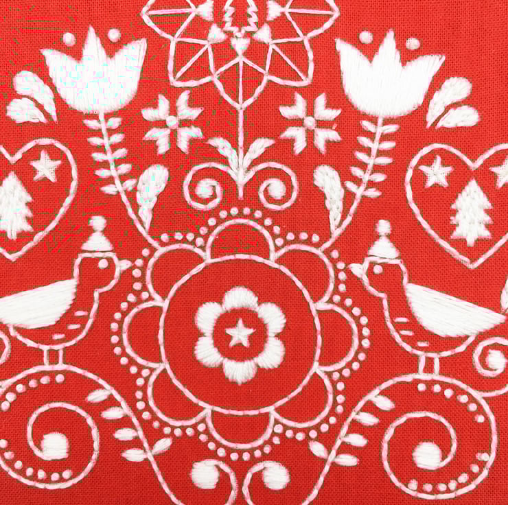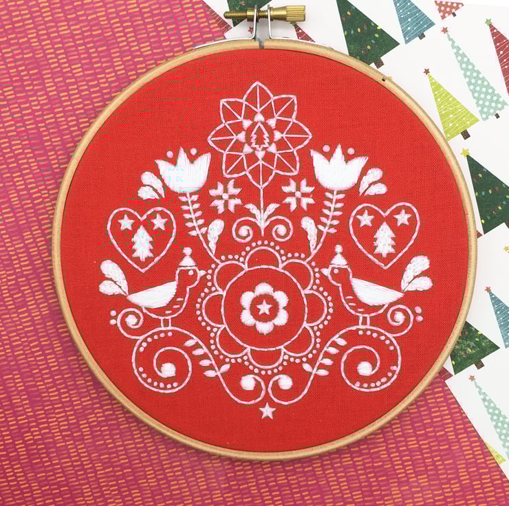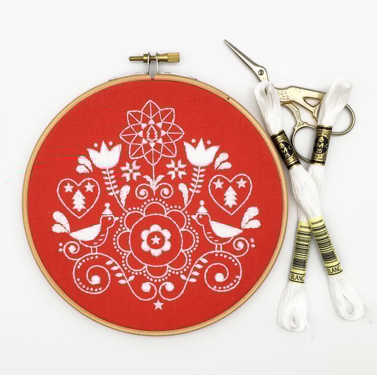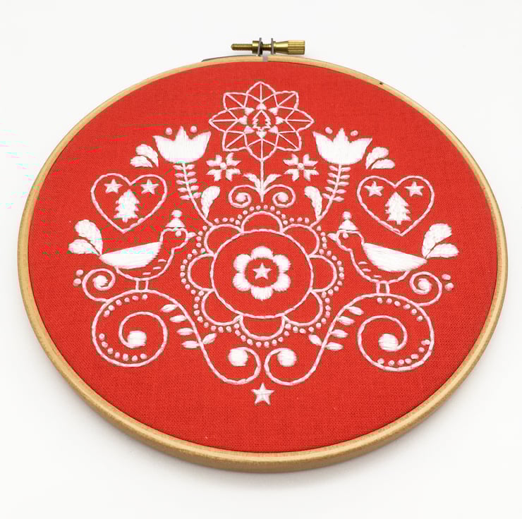 This piece was designed to be mounted in a simple embroidery hoop, but would look just as wonderful in a traditional frame for a stunning piece of wall decor.