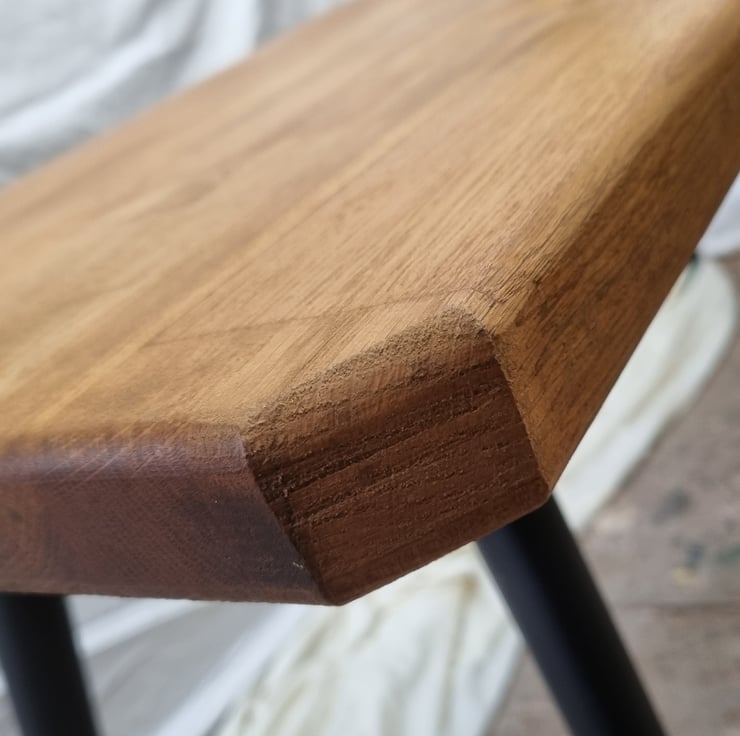 Rustic feel with black metal legs.