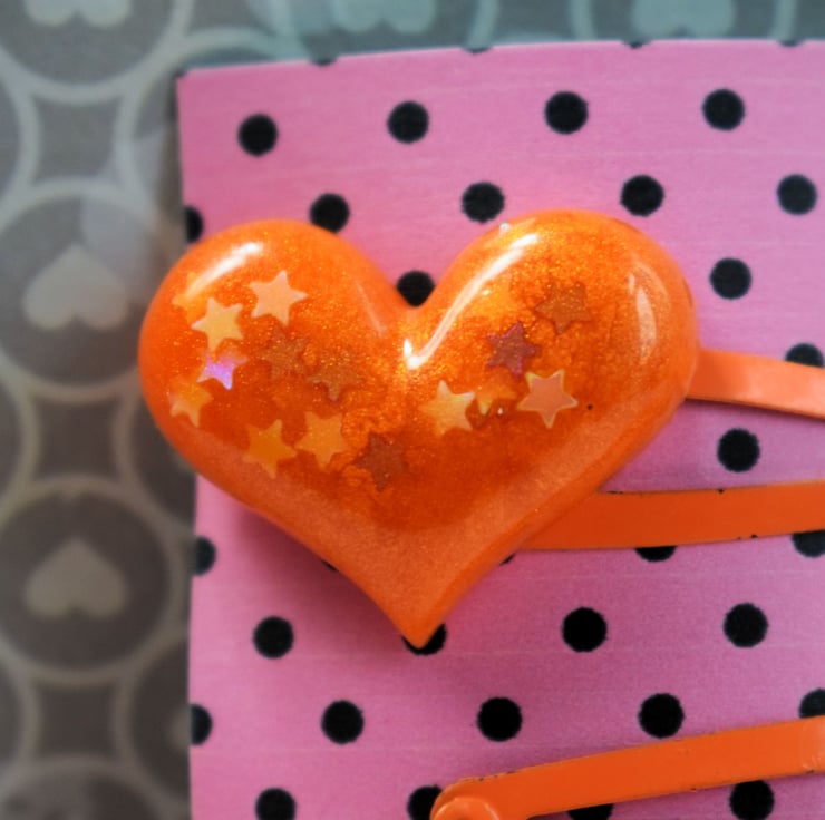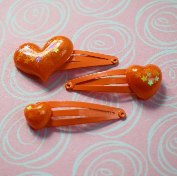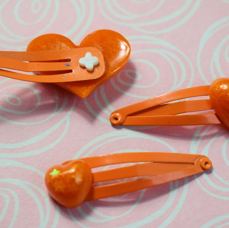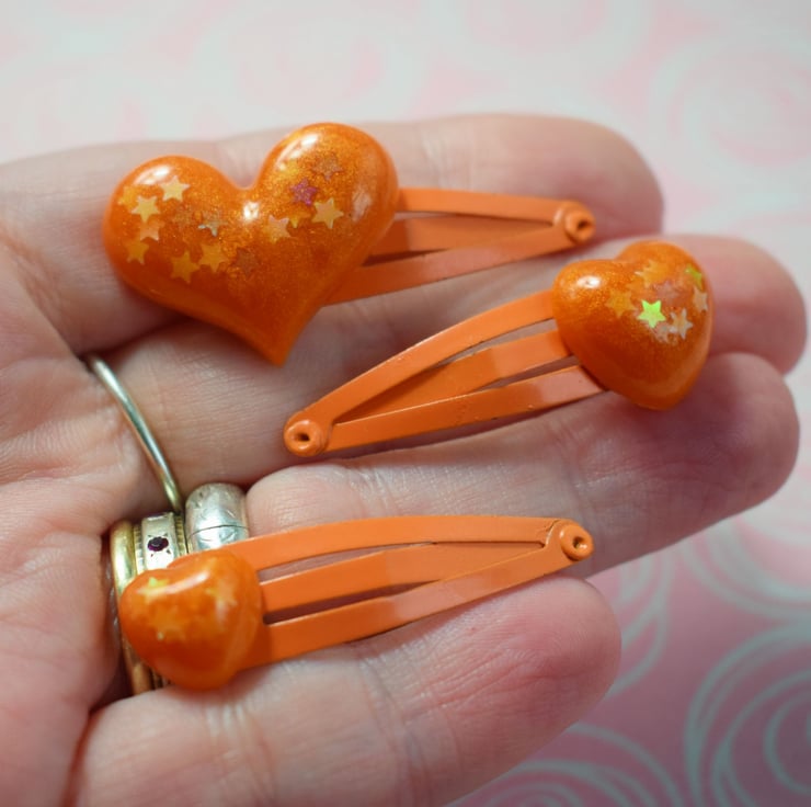These orange heart snap clips are such fun and are a great way to add a little colour to your hairdo!