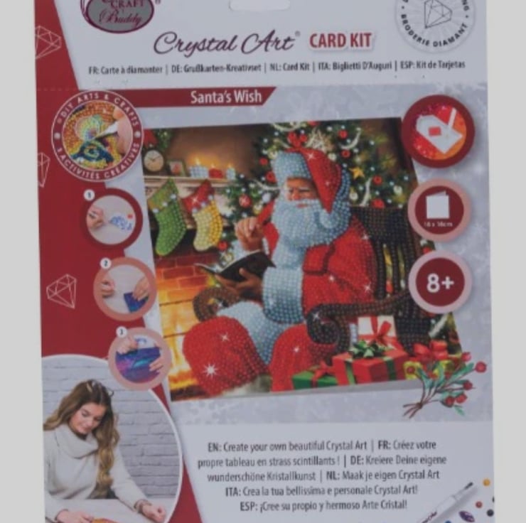 Crystal card kits are craft kits, ideal for children and adults, they enable you to make your own sparkly crystal card. This technique is similar to painting by numbers. Each crystal card design has a numbered, adhesive template. Using a tool (included), simply lift up the coloured crystals and place them on the corresponding numbered dots. They stick instantly! The result is a beautiful piece of sparkly art which you can gift to loved ones or use yourself. Making a crystal card takes 30-45 minutes. They are suitable for ages 6 and up.