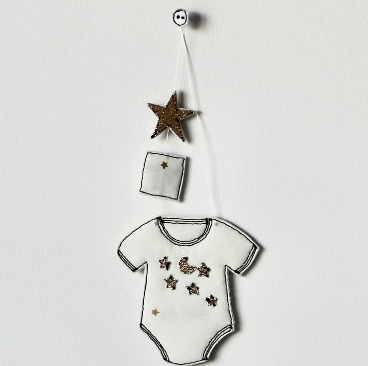 Suspend 'Welcome little one' baby-grow on a nursery door handle or cupboard knob and it will definitely bring a smile to your face.