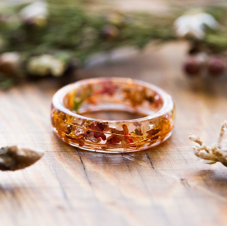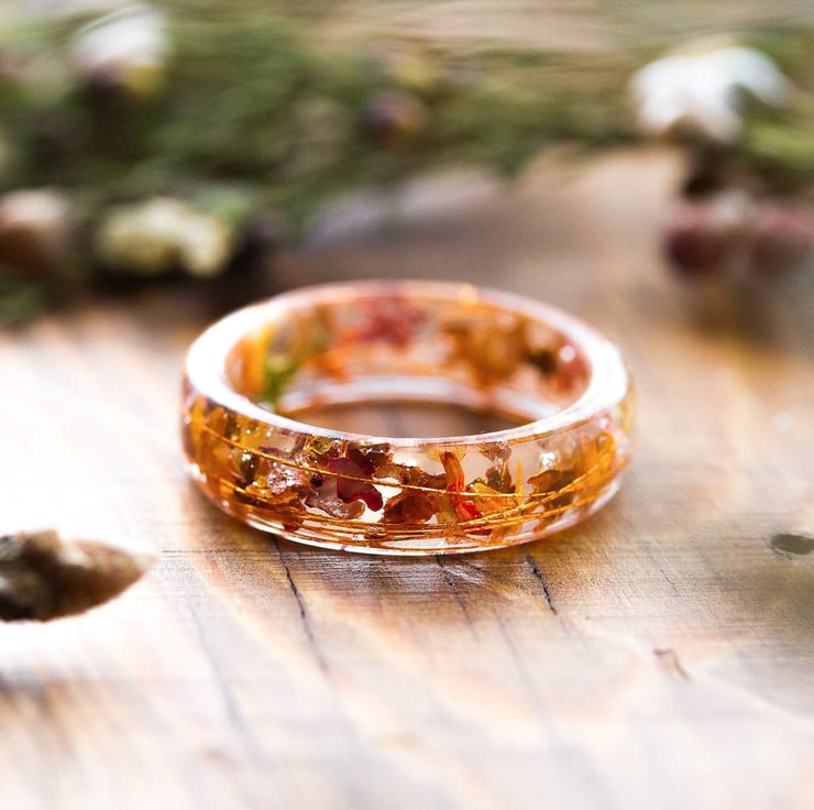 Autumn Ring Resin Jewelry Four Seasons Botanical Jewellery Pressed Flower Ring G