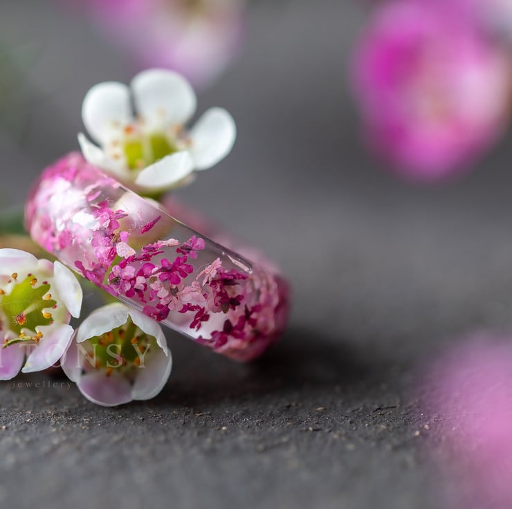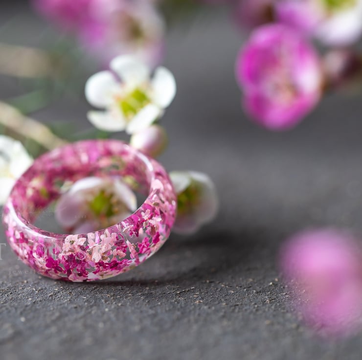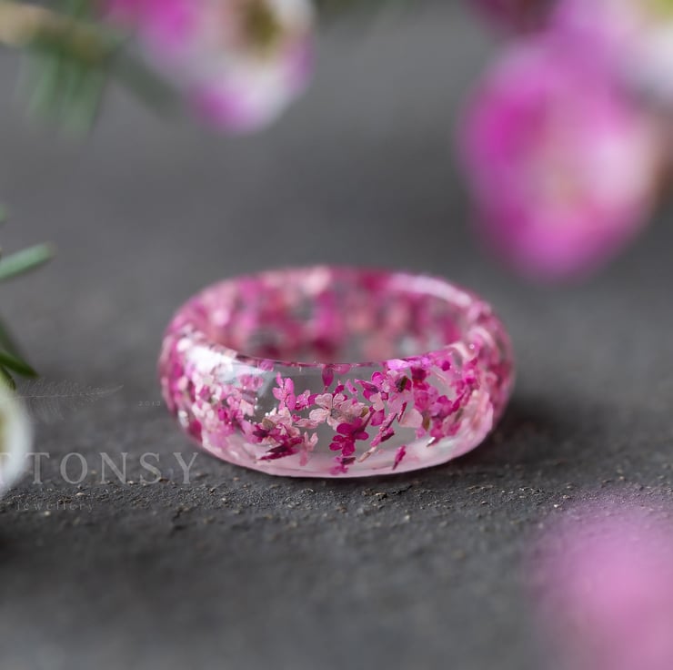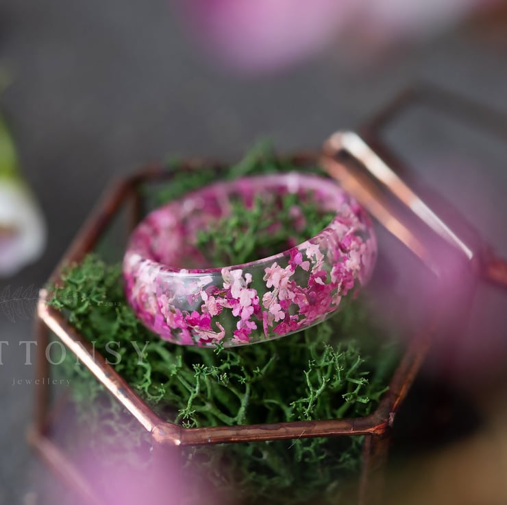 Four Seasons Spring Ring Cherry Blossom Ring Real Flower Ring Sakura Jewelry Gif