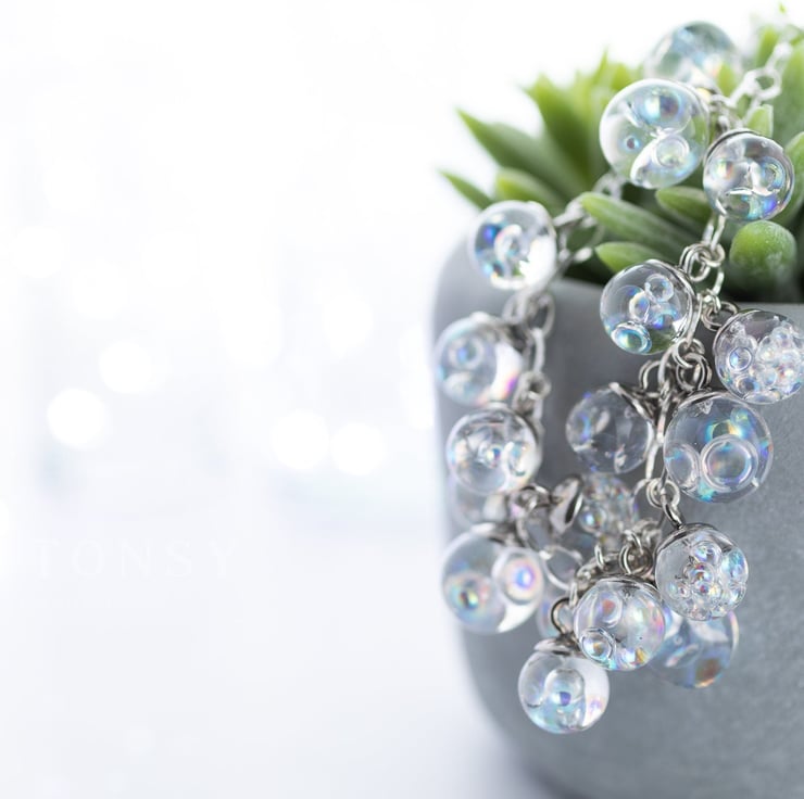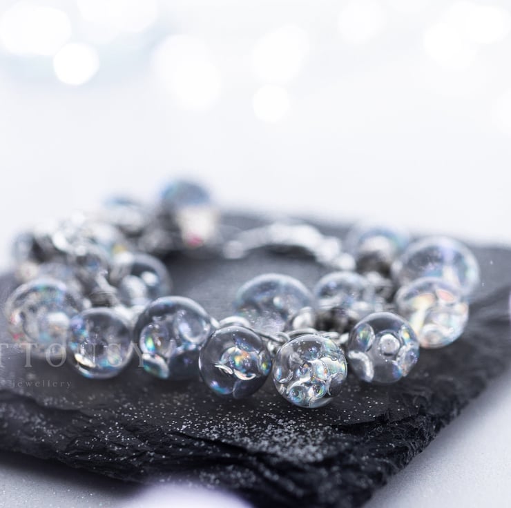 A stunning, stunning charm bracelet, made of iridescent bubbles, in solid sterling silver.