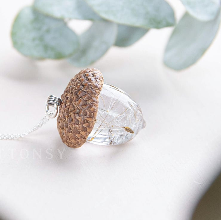 Dandelion Acorn Necklace "Dandecorn" Real Flower Jewellery Gifts for Her Dandeli