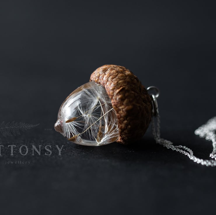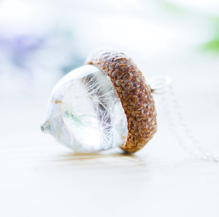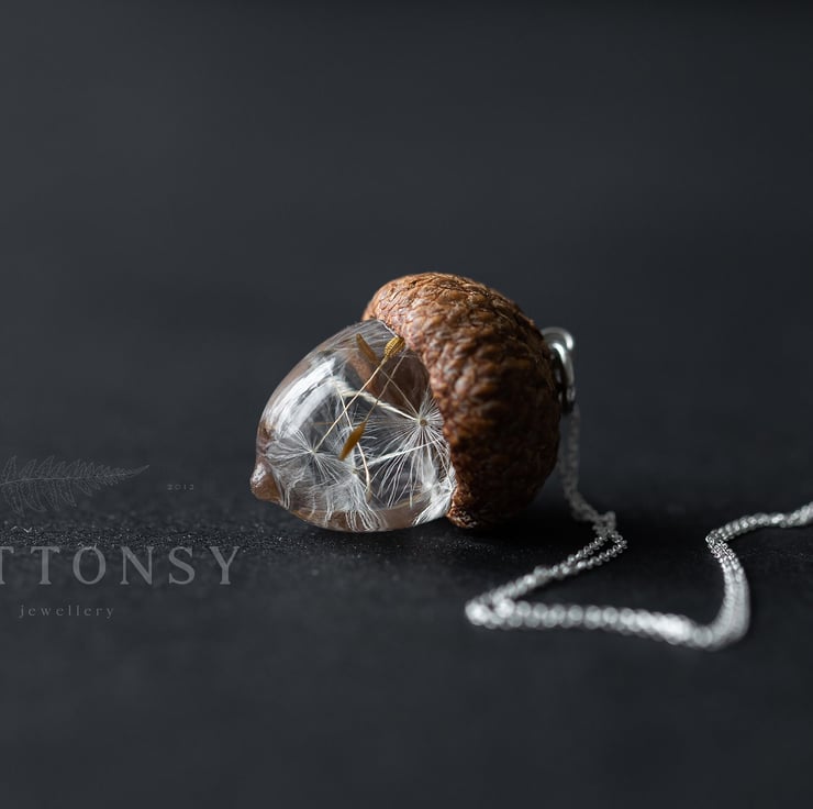 Dandelion Acorn Necklace "Dandecorn" Real Flower Jewellery Gifts for Her Dandeli