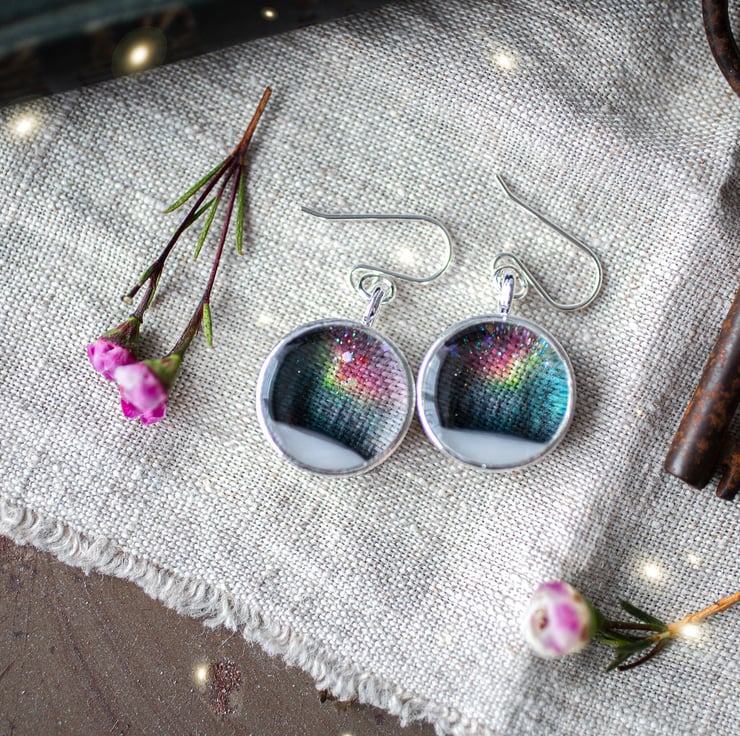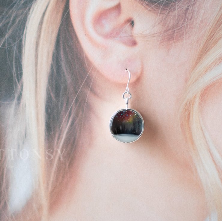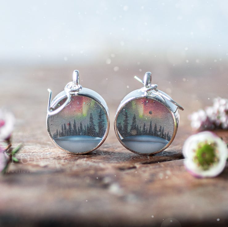 A perfect, still night-time scene, with the Northern Lights, snow on the ground, and tiny 3D stars that glint and change colour as you look at them... if you've seen Aurora, or if you dream of seeing them, this beautiful piece will wisk you away to a snowy land, where ribbons of light sway across the sky overhead...