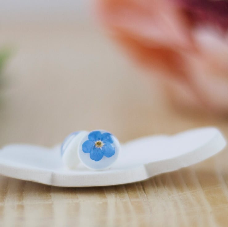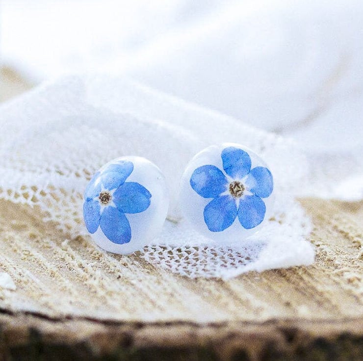 We spend time poring over our flowers to pair the forget me nots up so your earrings will be as similar as nature allows, but please bear in mind these are real flowers so there will always be minor differences.