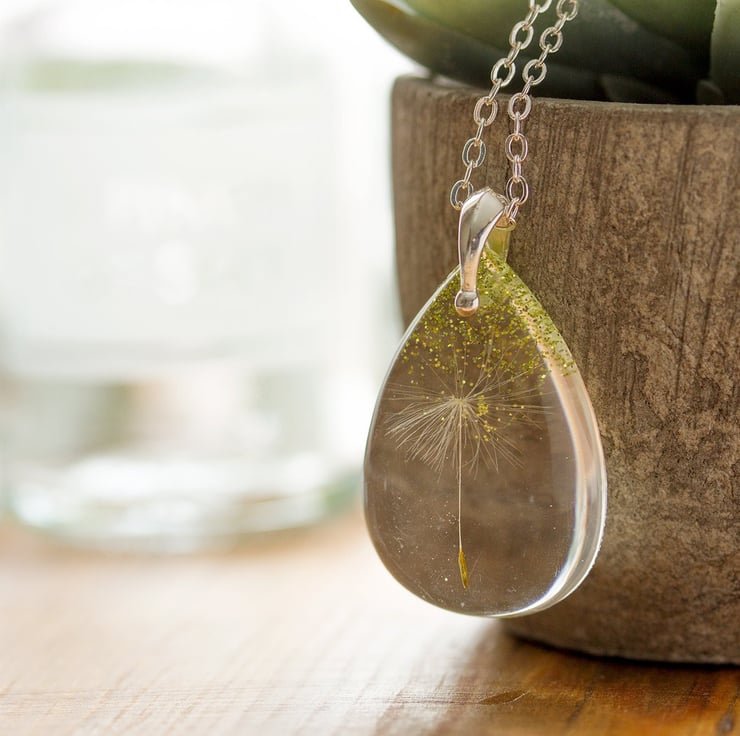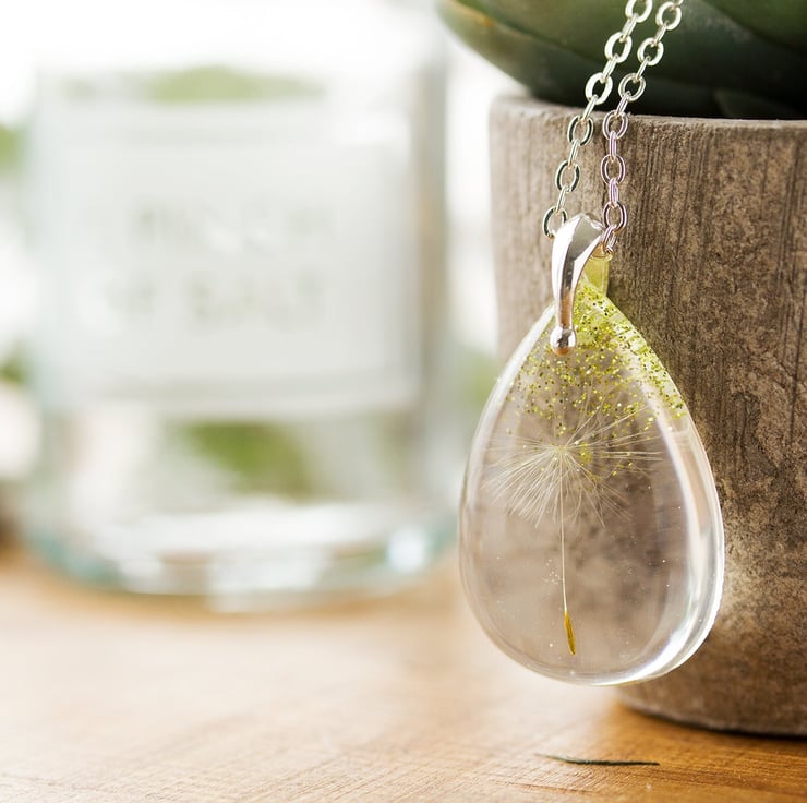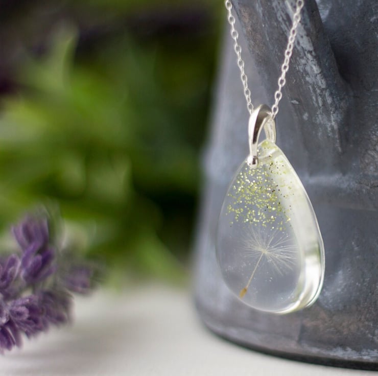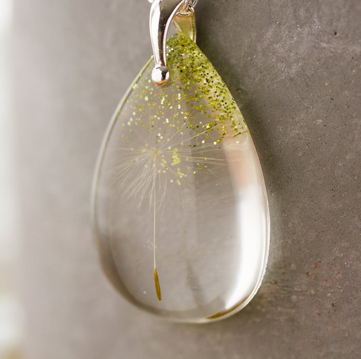 This beautiful necklace contains a single, perfect dandelion wish with a shower of glitters raining down upon it.. the perfect wish will remain safe and sound and protected for always... this is fairytale jewellery 3