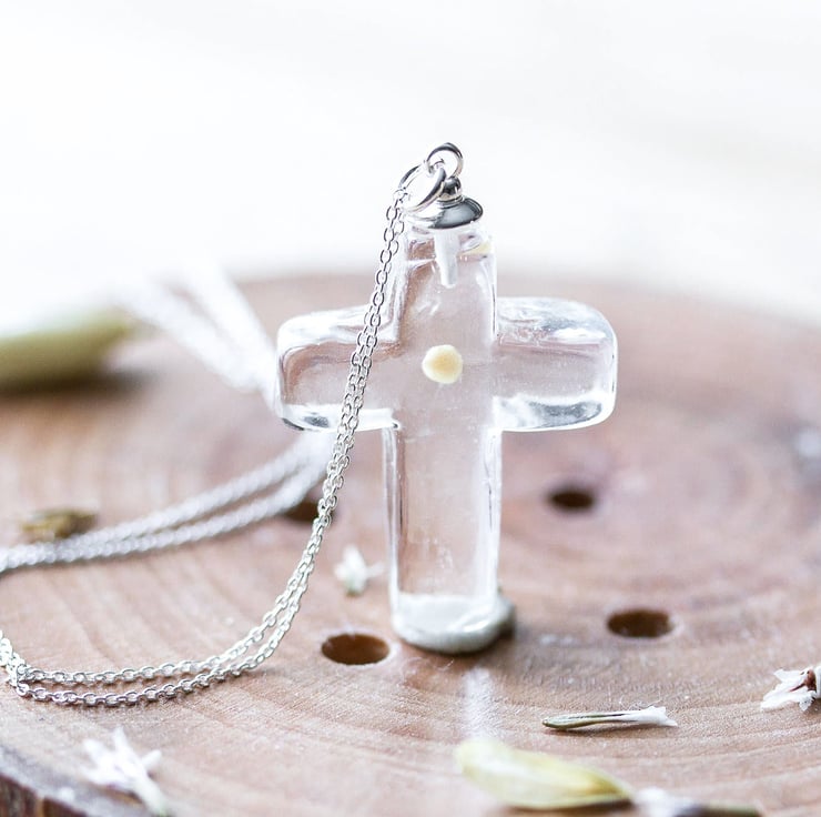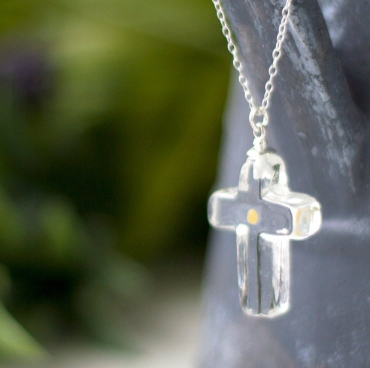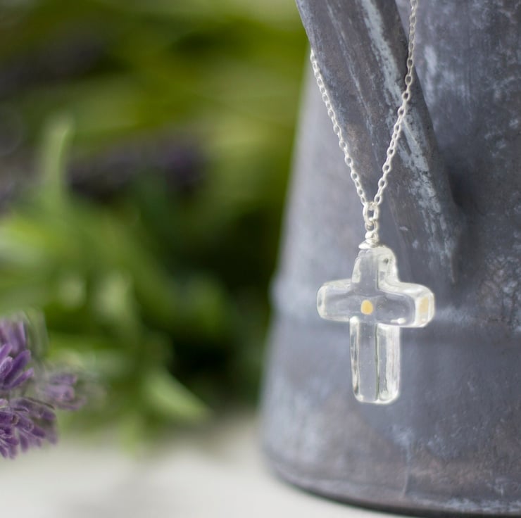 If you ever need to physically hold onto your faith, when it feels as small as a single mustard seed, look at this and remember the promise that that's all it takes. From faith the size of a mustard seed grows faith the size of an oak. All things can be accomplished through faith, even when it feels impossible. We have hand-molded this cross and placed the mustard seed at the centre of it to remind us Who we have faith in.