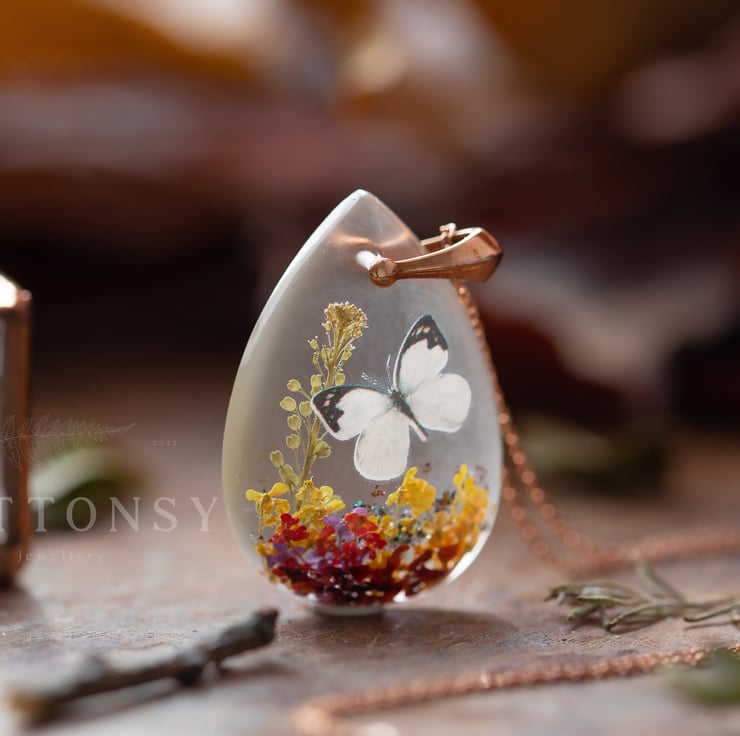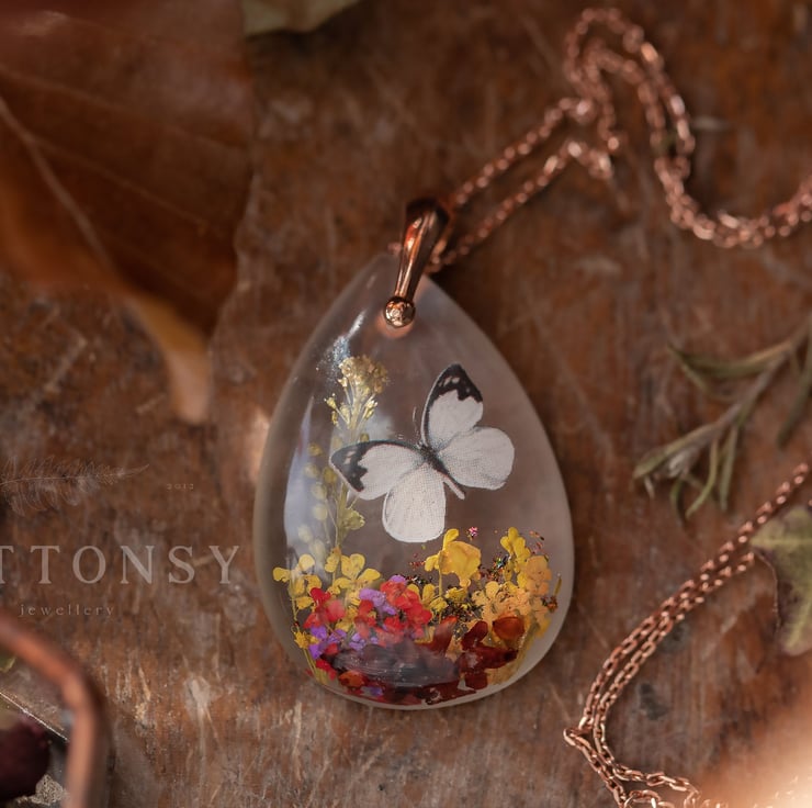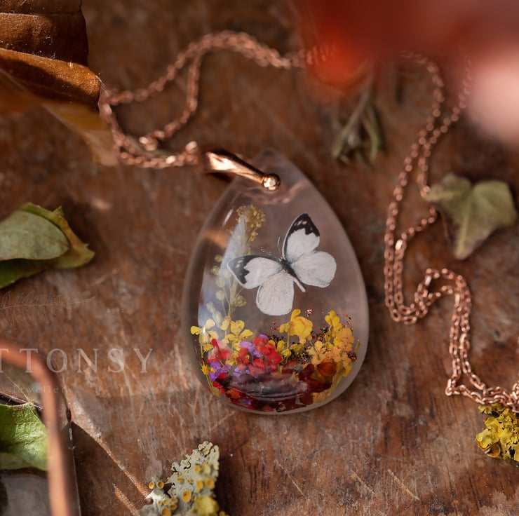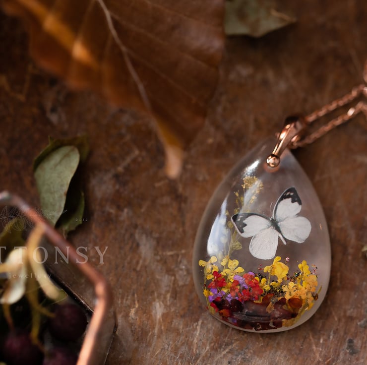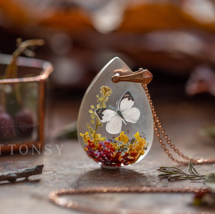 Autumn Butterfly Necklace Real Flower Necklace Gifts for Her Butterfly Garden Pr