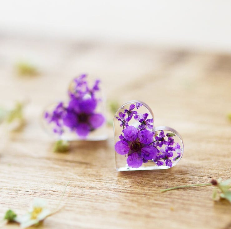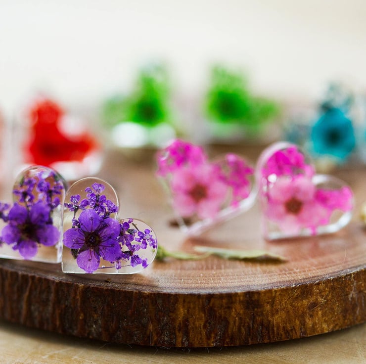 These beautiful real flower earrings are filled with real flowers in all of the colours... red through to pink and white, so whatever your very most favourite colour is, we have the earrings to match.
