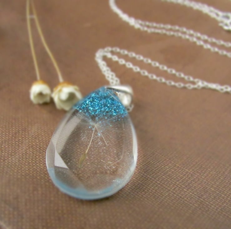 This beautiful necklace contains a single, perfect dandelion wish with a shower of glitters raining down upon it.. the perfect wish will remain safe and sound and protected for always... this is fairytale jewellery 3