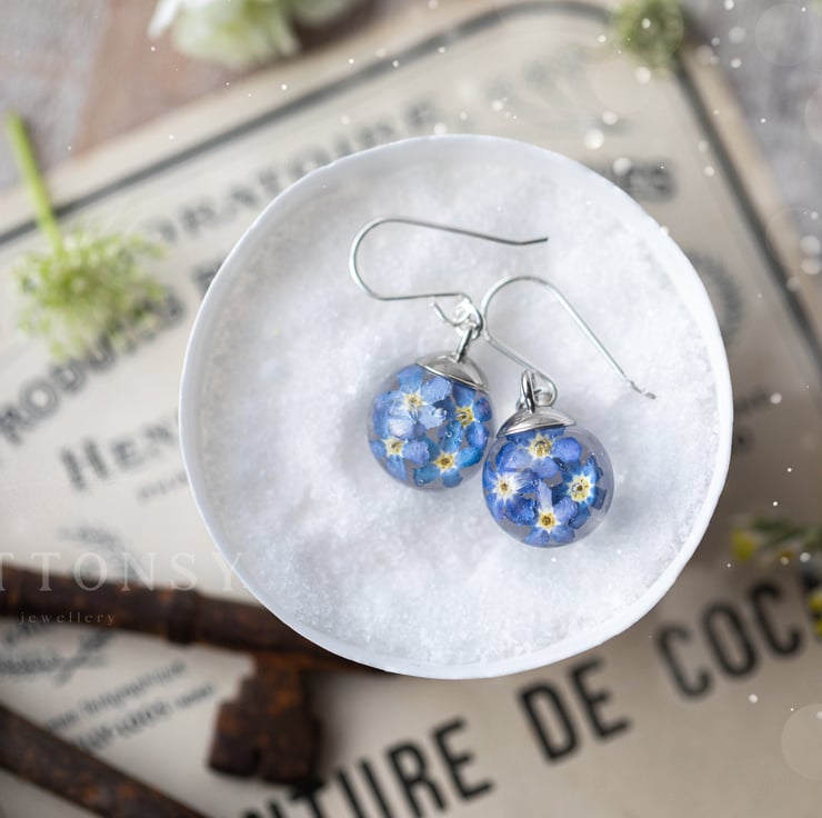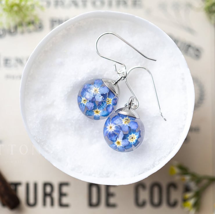 We spend time poring over our flowers to pair the forget me nots up so your earrings will be as similar as nature allows, but please bear in mind these are real flowers so there will always be minor differences.