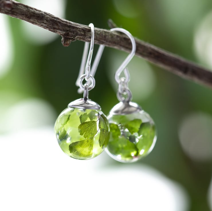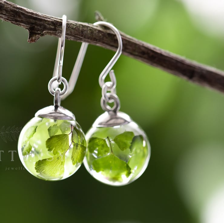Maidenhair Fern Earrings Botanical Earrings Fairytale Jewelry Pressed Flower Ear