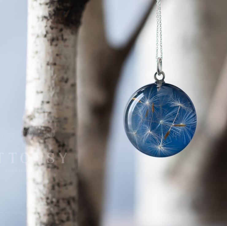 Beautiful dandelion wishes have been caught in a gorgeously, tactile "pebble". This is truly magical jewellery. It is delicate, and elegant, for women that love to dance in the rain.