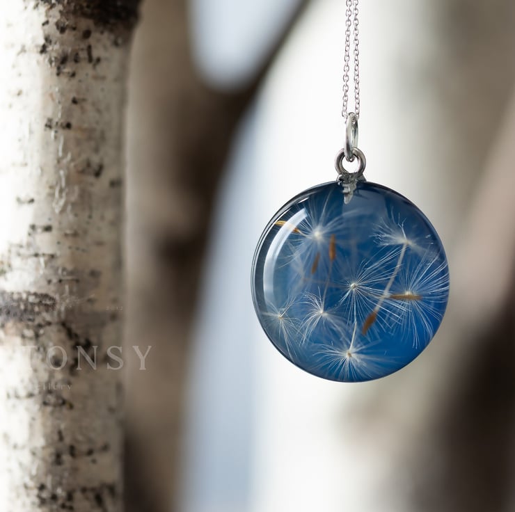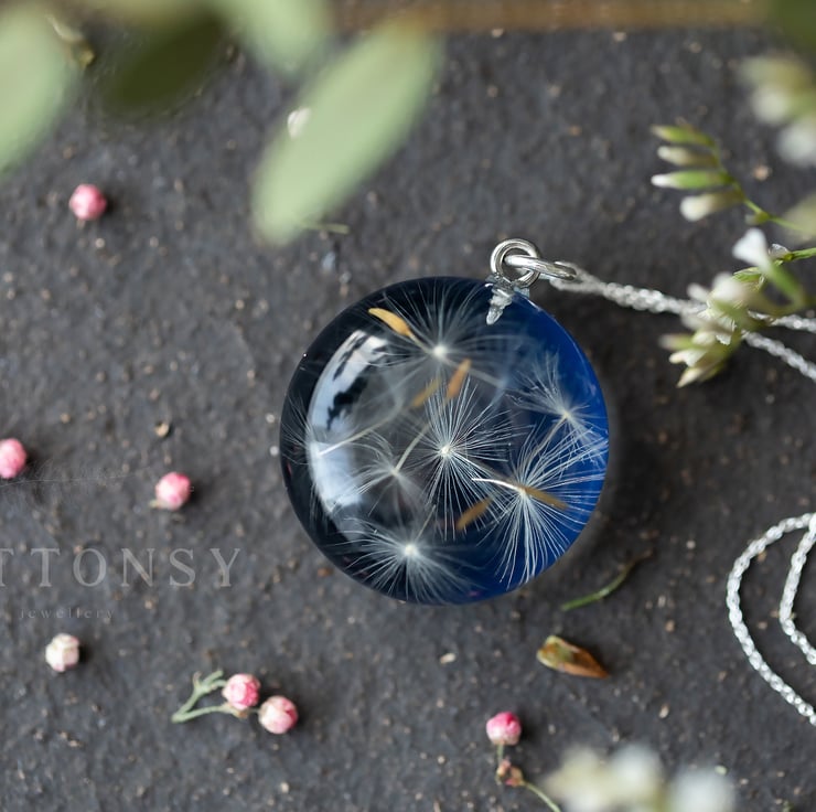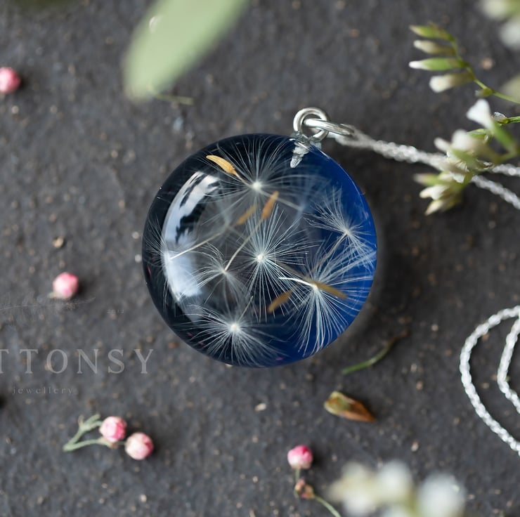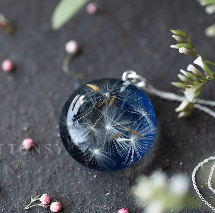 Beautiful dandelion wishes have been caught in a gorgeously, tactile "pebble". This is truly magical jewellery. It is delicate, and elegant, for women that love to dance in the rain.