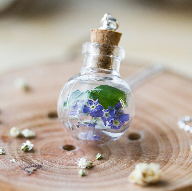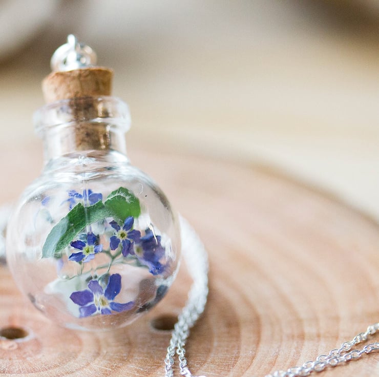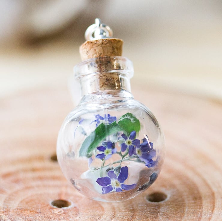Forget Me Nots Necklace Glass Globe Blue Forget Me Nots Botanical Jewelry Wildfl