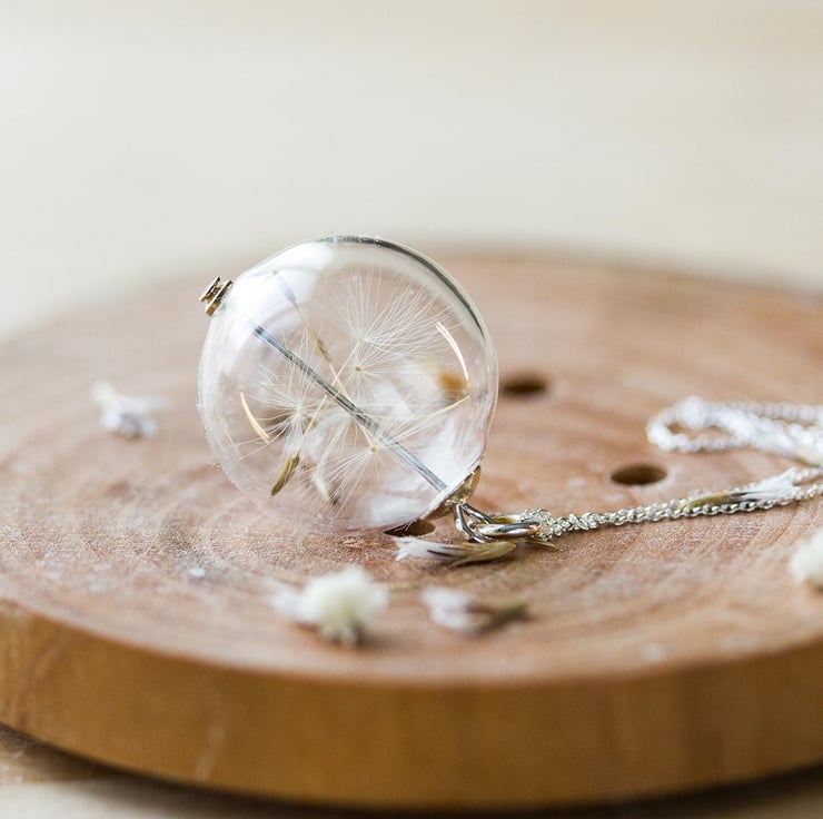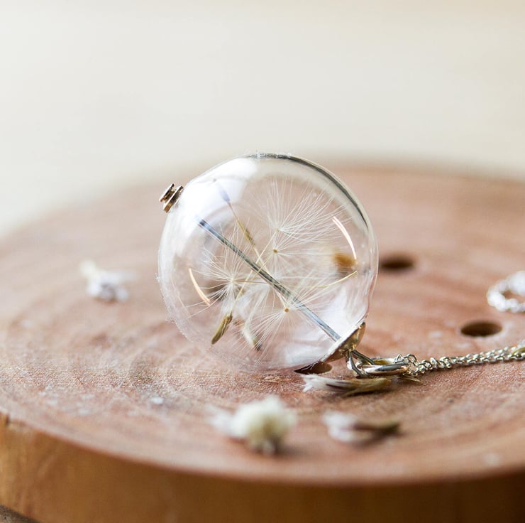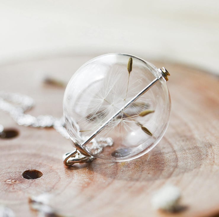 We have specifically selected the largest, fluffiest, dandelioniest wishes to place in these - this necklace is truly joyful.