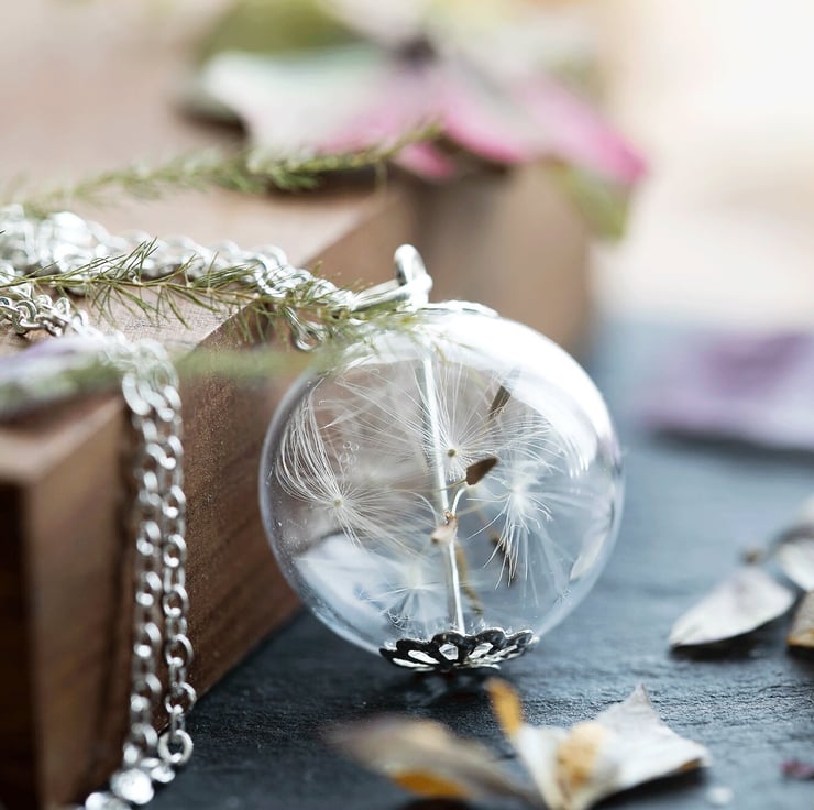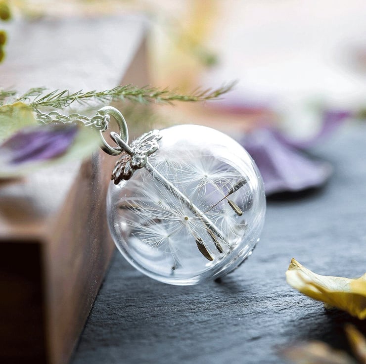 Dandelion Necklace Glass Globe Dandelion Seed Necklace Botanical Jewellery Wildf