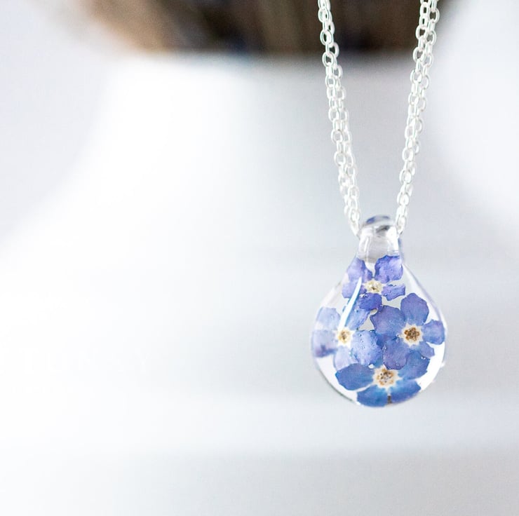 Forget Me Nots Necklace Droplet Cluster Pressed Flower Necklace Gifts For Her Me