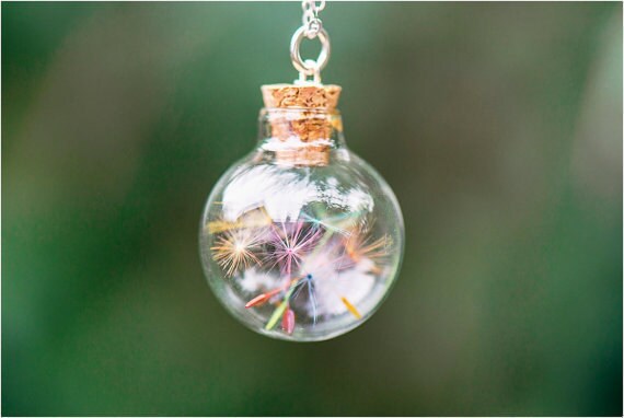 The glass bottle is sealed with a teeny tiny cork and come on an 18" sterling silver chain - these are also available in glass globes without corks, so please do send us a message if you would prefer your necklace in this style: