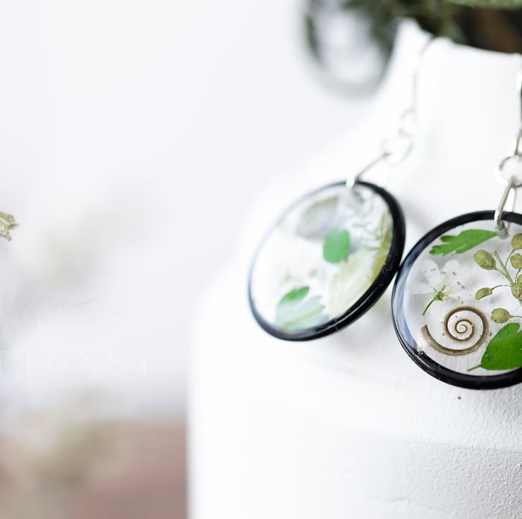 Each pair of earrings will be slightly different but your earrings will be filled with beautiful, tiny pieces of confetti from the forest.