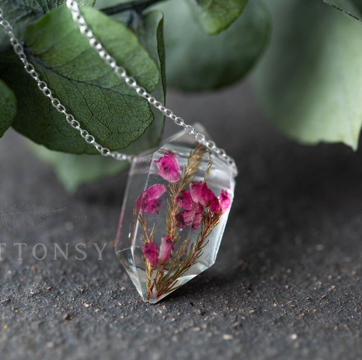 Heather Necklace - "Raw Crystal" Pressed Flower Jewelry Gifts For Her Real Flowe