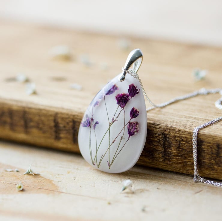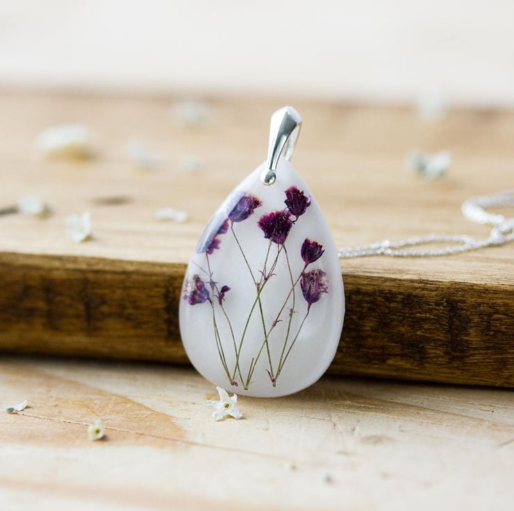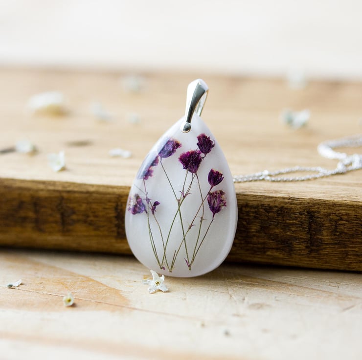 A sprig of real Gysophila - also known as "Baby Breath" - on a pure white background... Baby Breath is one of the most delicately beautiful flowers. They're tiny, and so gentle - this is jewellery for those days when you want to feel peaceful, and quiet, and you are absolutely sure that everything is going to be wonderful...