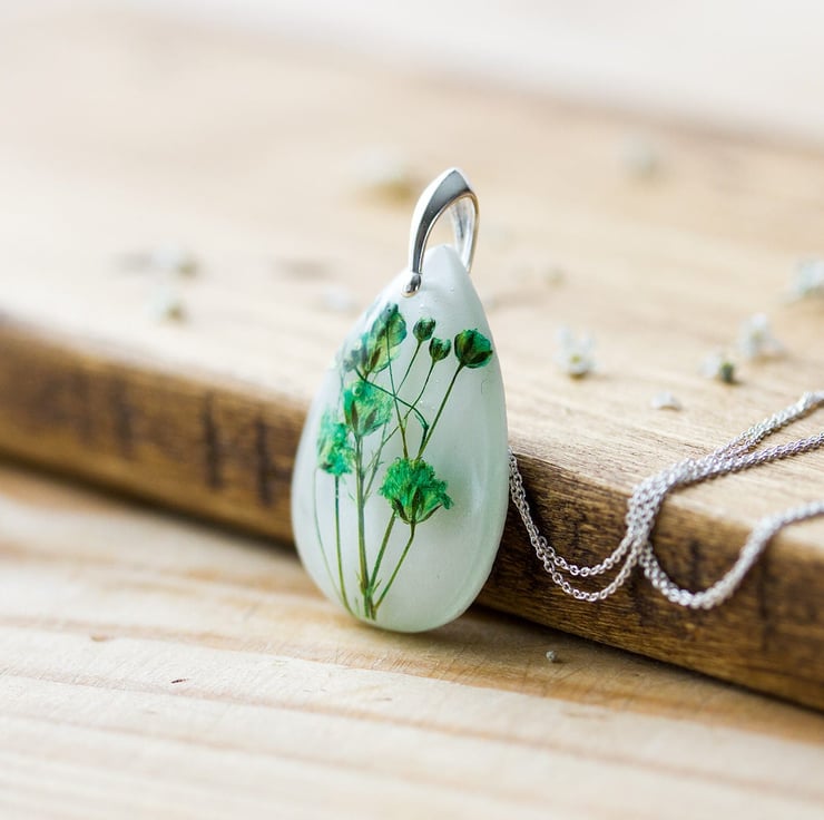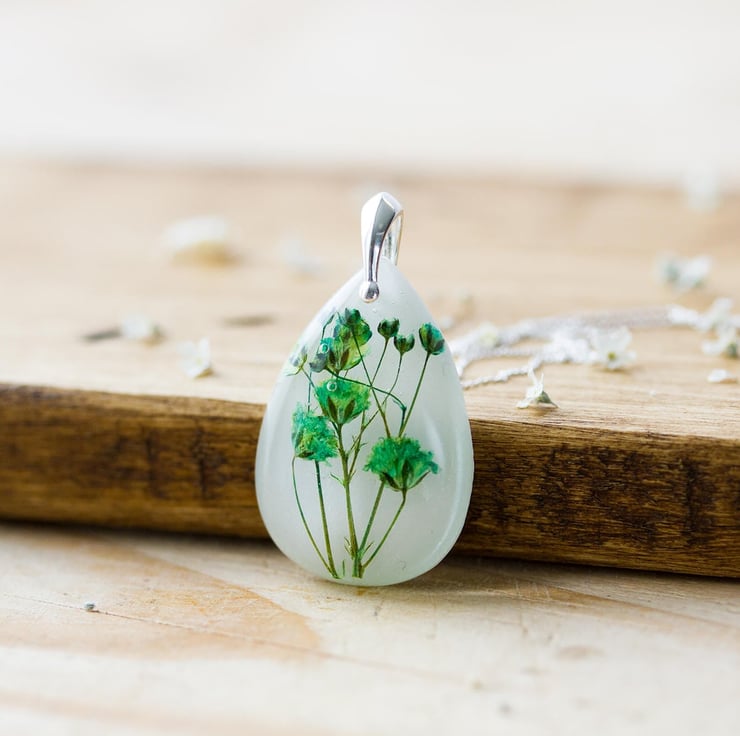 The pendant is 30mm from top to bottom, not including the bail, and comes on an 18" sterling silver chain.